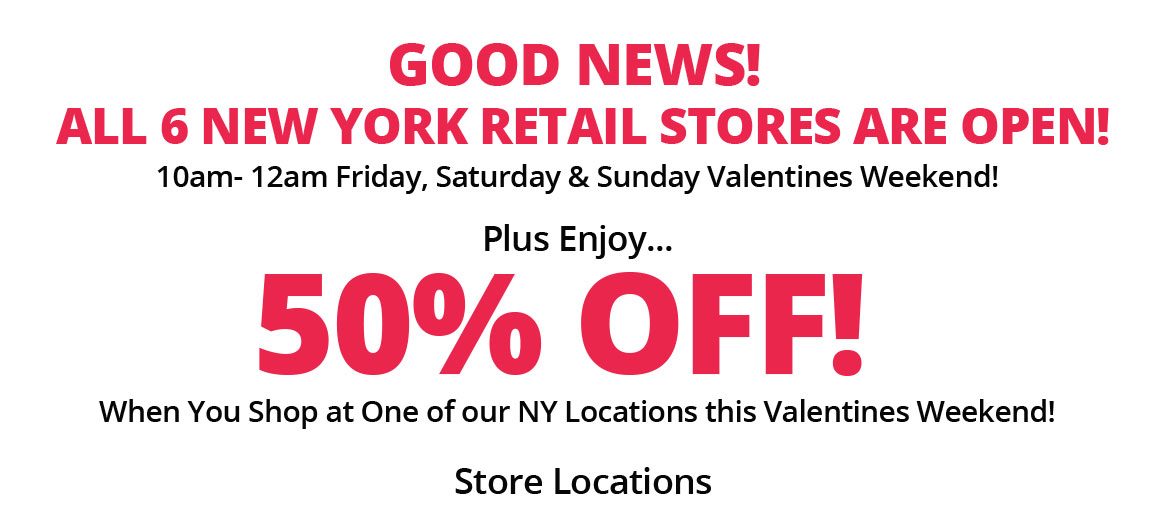 *Limit 1 item per customer. Simply mention this ad or show us this ad on your smartphone. Excludes We-Vibe, Lelo, Sex Machines, Cowgirl, Le Wand. Satisfyer, Magic Wands, Bathmate, and other in store sale items. Not to be combined with any other offer including VIP cards, 20% off cards, Gift cards, Groupon or Yelp deals, past sales promotions, or on any special sale items. Limit first 1000 customers. Expires Saturday 2.13.21 at Midnight. See in-store for details.