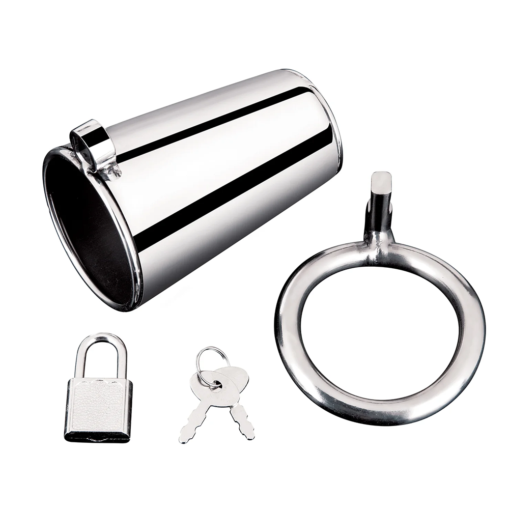 The Ultimate Cock Tease Cage – Silver is a cylinder-shaped chastity device that provides a nearly solid enclosure to the shaft, exposing just the tip. When the Ultimate Cock Tease Cage is worn, the wearer can experience the way that denying sensation heightens arousal to explosive new levels. With a separate ring to wear around the testicles, this chastity device offers a kinky sensation boost. Lock the device in place using the included padlock to keep him securely entrapped.