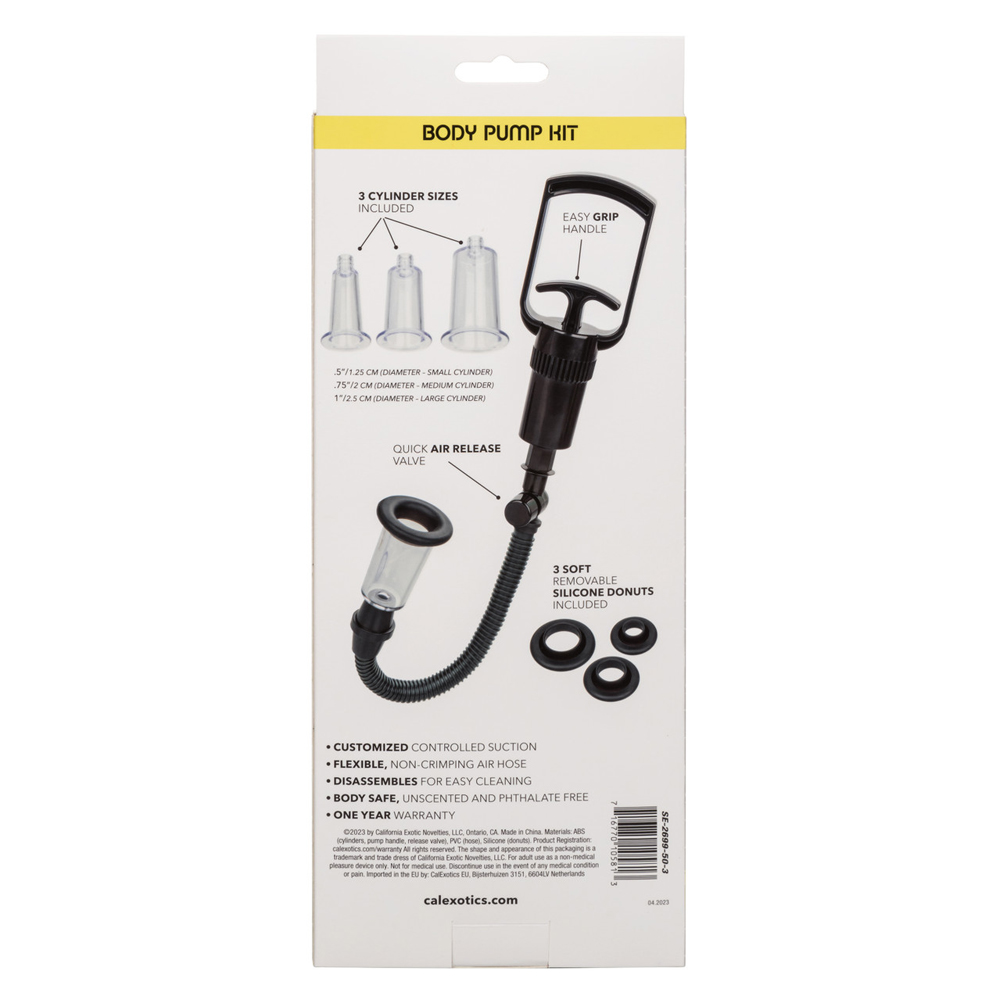 The Boundless Body Pump Kit is a powerful and easy to use tool for customized and controlled suction. This Body Pump is designed to enhance your intimate experiences and provide thrilling sensations. The Body Pump Kit includes three different Cylinder sizes, allowing you to choose the perfect fit for your body. Each Cylinder is equipped with a soft, removable Silicone Donut for added comfort and a secure seal. The easy grip handle ensures a firm hold, giving you full control over the suction intensity. With its flexible and non-crimping Air Hose, this Body Pump Kit provides powerful and uninterrupted airflow. The quick release purge valve allows for quick and easy pressure adjustment, giving you the ability to customize the experience to your liking. When it comes to cleaning, the Body Pump Kit is designed with convenience in mind. It easily disassembles, allowing for thorough cleaning and maintenance, ensuring a hygienic and long lasting experience. Discover the pleasure of customized suction and explore new sensations with the Boundless Body Pump Kit. Whether you are a beginner or an experienced user, this Body Pump Kit offers a user friendly and satisfying pumping experience that will take your intimate encounters to new heights.