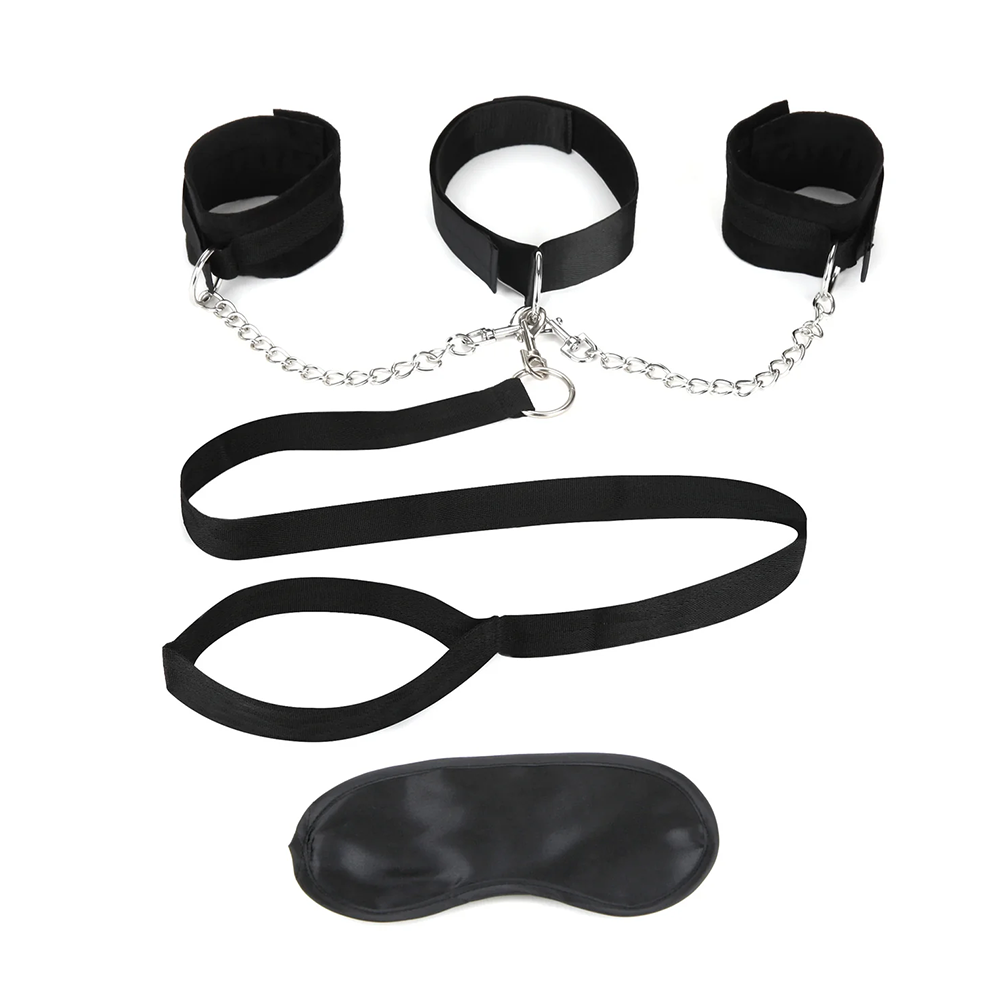 Turn your partner into an obedient pet with the Lux Fetish Collar, Cuffs, and Leash set! Enjoy an all-inclusive restraint design, the ultimate addition for any adventurous couple looking to explore pet play or power exchange. This set features a fully adjustable collar and soft, plush-lined cuffs that offer gentle restraint while you take the lead with the detachable leash. Each piece is equipped with sturdy metal D-rings and a chain with a quick-release clip, giving you endless ways to mix and match your play style. And for that extra touch of mystery, a satin blindfold is included. So go ahead—let your imagination run wild while your sub stays locked!