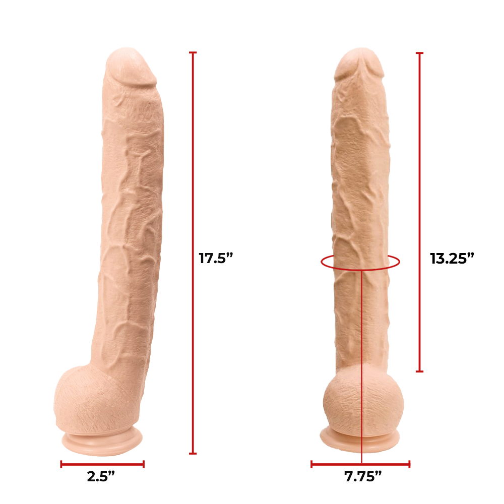 The Doc Johnson Dick Rambone 17.5″ Suction Cup Dildo with Balls is a 17.5″ extreme dildo replica that will never leave you wanting more! Molded from Dick Rambone’s infamous cock (yes, Dick Rambone existed IRL back in the day) – this huge dildo features Mr. Rambone’s realistic cock that will fill you up with 15″ of insertable length. Brave the Rambone hands-free with the sturdy suction cup base, or partner up for extreme strap-on harness play. This lifelike porn star dildo is made from non-phthalate material which includes Doc Johnson’s anti-bacterial Sil-A-Gel formula. 17.5″ total length, 15″ insertable length.