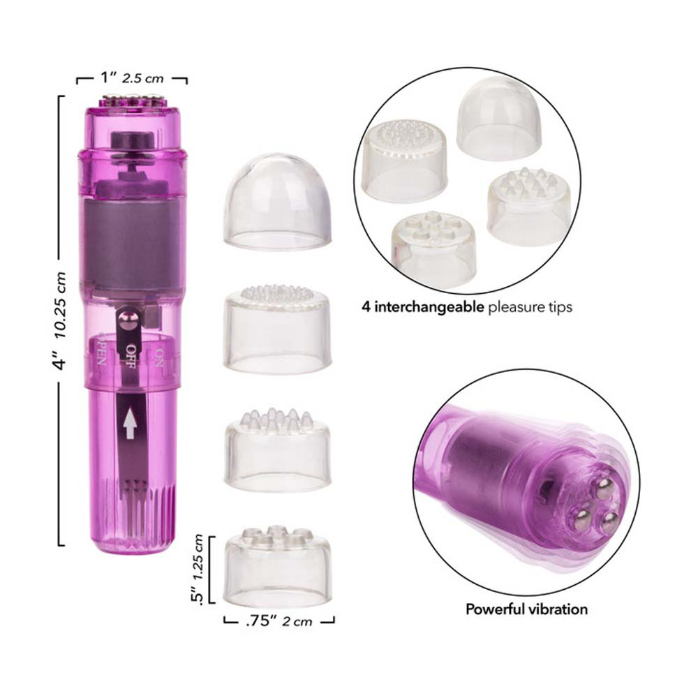 Satisfy your intimate desires with the Dr. Laura Berman Intimate Basics Athena Waterproof Mini Massager. The compact, lightweight mini personal massager is designed to tease and tantalize your most sensuous sweet spots. The travel-sized stimulator discreetly fits into your purse or pocket for pleasurable ecstasy wherever you go. The discreet arouser measures 4”x 1”/ 10.25 cm x 2.25 cm, and is made from durable body safe ABS. The translucent massager features four interchangeable soft tips, adorned with sensual pleasure nubs and teasers. Select your preferred textured tip and simply attach to the hand-held mini vibe. Apply erotic stimulation all over the body and enjoy mind-blowing sensations, and an unforgettable arousal and climax experience. The powerful mini stimulator is great for spontaneous play in or out of the water. Use the arouser during hot and steamy couple’s play, or for self-gratification. The massager is suitable for first-time and experienced users, and ideal for pinpoint stimulation. Always use a quality lube with this toy, to heighten sensitivity and to extend your intimate pleasure. Clean the detachable TPR tips with mild soapy water or a toy cleaner spray before and after every use.