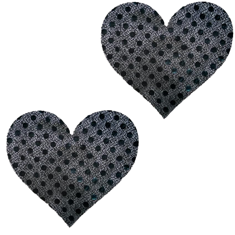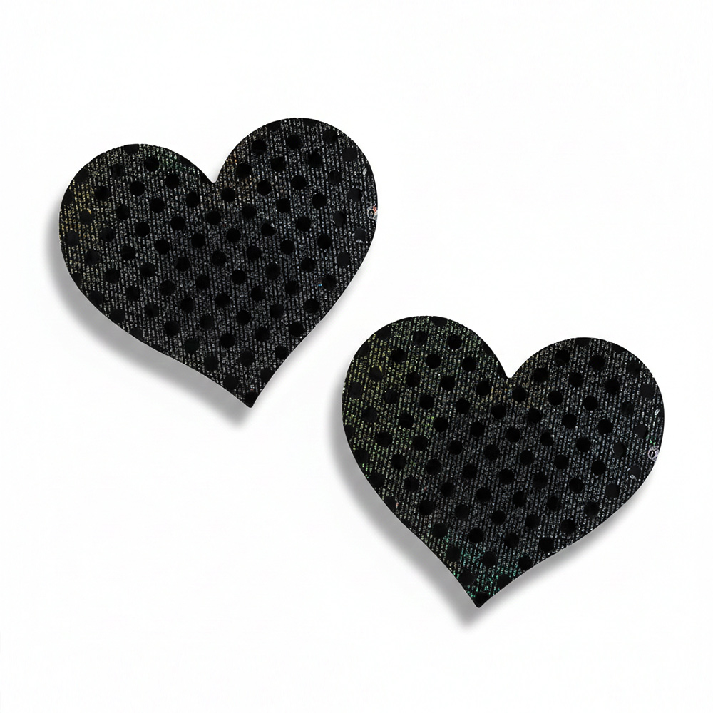 Black Shiny Fabric Heart-Shaped Nipple Pasties
