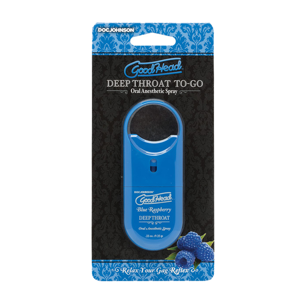 Go down with ease! GoodHead Deep Throat Numbing Spray travel-sized spray mildly numbs the back of the throat and suppresses the gag reflex to allow deep oral penetration without discomfort. This functional, flavorful spray is formulated for minimal medicinal taste and maximum effect in a variety of mouth watering flavors. Features: delicious throat desensitizer. Helps minimize gag reflex. Mild numbing agent. Freshens breath. Easy to use spray nozzle. Directions: spray into throat. One spray per use. Adults only. Warnings: allergy alert do not use this product if you have a history of allergy to local anesthetics such as procaine, butacaine, benzocaine or any other caine anesthetics. Active ingredient Benzocaine 5%. Proudly, made in America.