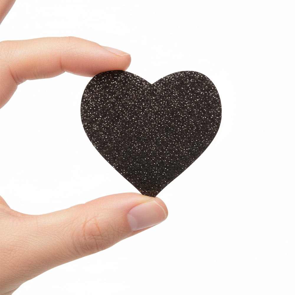 Made of high-quality, silky satin, this pair of sparkly Grey Glitter Heart Nipple Pasties will dazzle up your look with a dash of glitz and glamour. These comfortable, fashionable nipple covers are designed to stay in place and will adapt to your body’s shape. Peel-and-stick design provides a peek of seduction, and excellent nipple coverage under regular clothing, sheer clothing, or nothing at all! The interior adhesive is made from latex-free and waterproof material.