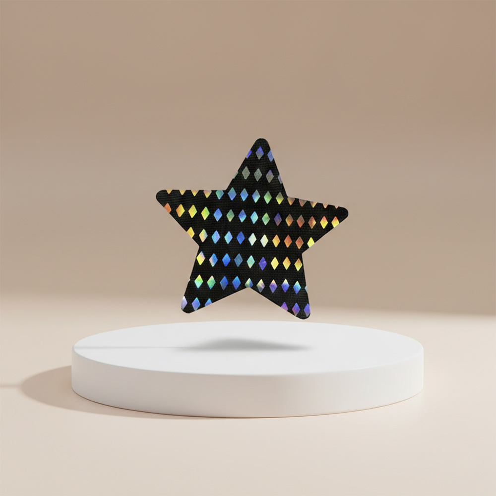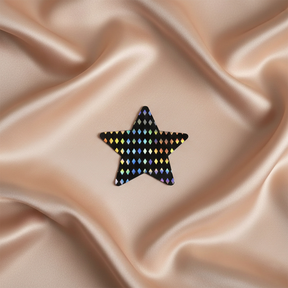 Let them know who’s the star of the show, festival, dance floor, rave, or stage! Elevate your outfit into another dimension with this set of radiant Holographic Diamond Pattern Star Nipple Pasties! These comfortable, long-lasting nipple covers are designed to stay in place and adapt to your body’s shape. Peel-and-stick design provides a hint of starry-eyed seduction, and excellent nipple coverage under regular clothing, sheer clothing, or nothing at all! The interior adhesive is made from latex-free and waterproof material.