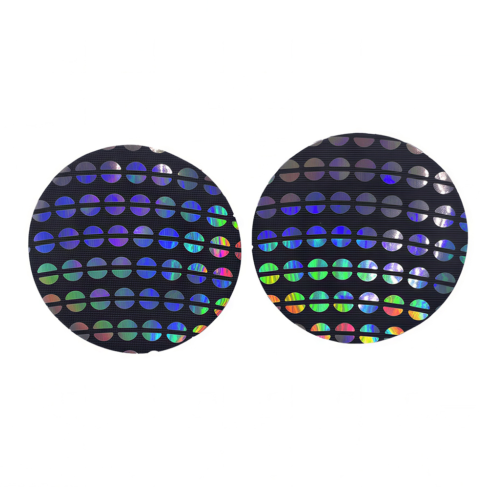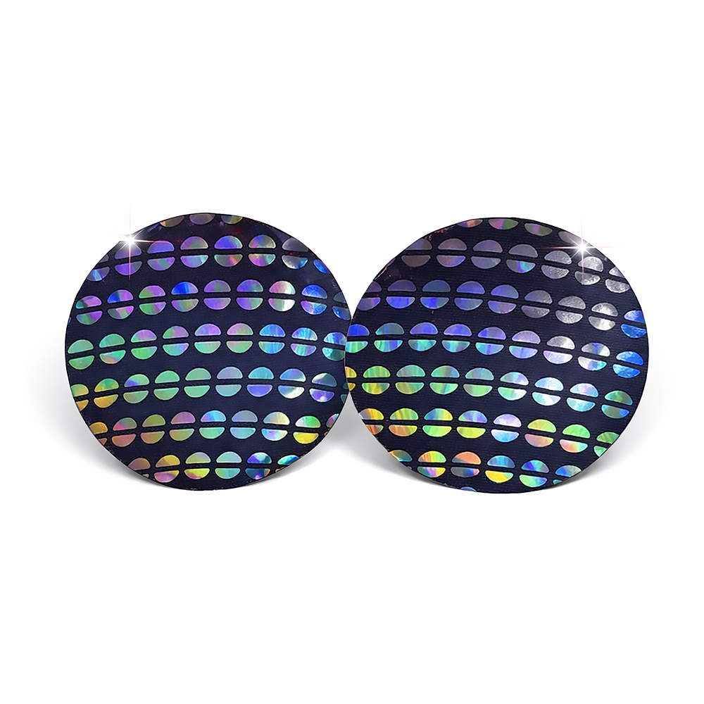 Elevate your style and vibe into a sexy new dimension with this set of cosmic chic Holographic Sequin Pattern Circle Nipple Pasties! These comfortable, long-lasting nipple covers are designed to stay in place and adapt to your body’s shape. Peel-and-stick design provides a hint of seduction, and excellent nipple coverage under regular clothing, sheer clothing, or nothing at all! The interior adhesive is made from latex-free and waterproof material.