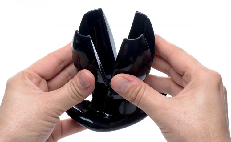 Master Series Claw Expanding Anal Dilator Black from XR Brands. If you are ravenous for a huge, ass stretching insertion, the Claw will open you up like nothing else! Pinch all four wedges together for a more manageable penetration. Once past your sphincter, the Claw will expand, opening your insides up! A hole at the base of the plug allows your partner to peer into your anal depths, or even fill you up with a dildo, an enema, or whatever your filthy minds come up with! The phthalate free material is firm, yet flexible and will press against all the right spots inside you. Enjoy a distinct sensation! Measurements: 4.5 inches in total length, 3.5 inches insertable. When closed, diameter measures 2.25 inches at widest point. When opened, diameter measures 4.25 inches. Center hole measures 1.5 inches in diameter. Material Thermoplastic Elastomers TPE.