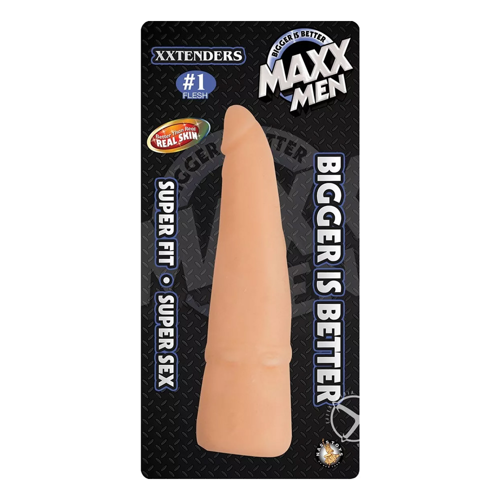 Effortlessly add length and girth with the Maxx Men 7.25″ Penis XXtender #1 – Light Beige. Better than the real thing, because size matters! With a slightly curved, tapered head, this unique cock extender slides over the penis to deliver more length and girth for the receiver. This penis extender is made from TPR material. Safe with water-based lubes.