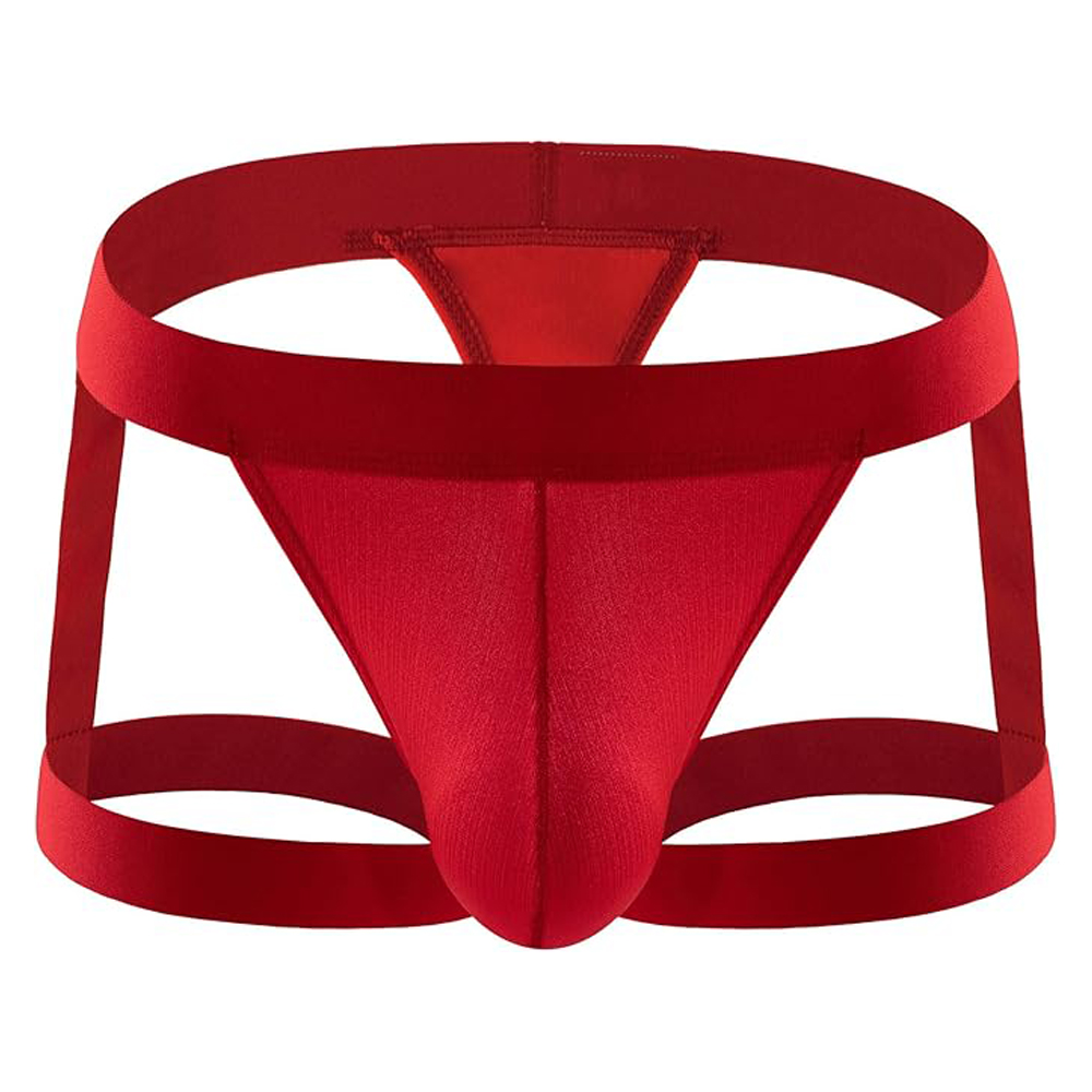 Men’s Strappy Body Cage Jock Strap Thong – Red – Large