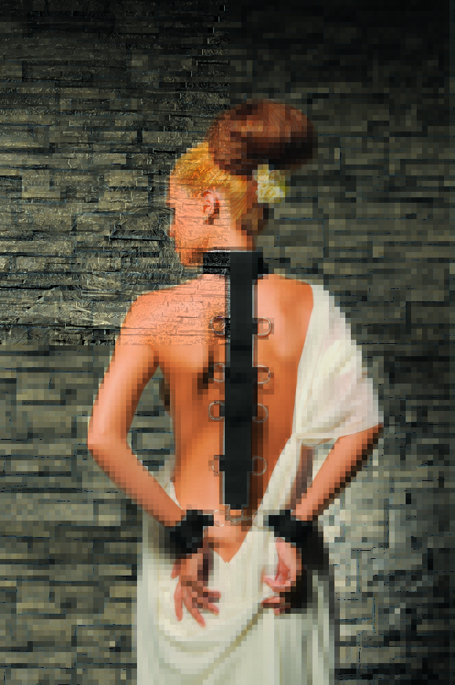 Sportsheets Neck & Wrist Restraint is a unique BDSM accessory can be worn across the chest or back, depending on your preferences. Soft sturdy collar with Velcro closure. Heavy nylon webbing restraint strap with sturdy metal D-rings. Includes 2 Neoprene cuffs. A soft Velcro closure neoprene collar drapes a wide nylon band, studded with four D rings on each side, down the wearer’s body. An included pair of neoprene Velcro closure cuffs can be attached at any points, when paired with a snap hook or tie, sold separately. A fun restraint accessory with many pleasurable possibilities for devious minds! Color: Black Type: BDSM Accessory. Details: create your own personal body restraint system with this neoprene neck collar with attached nylon strip with 4 D-rings on either side. Two neoprene Velcro Cuffs that attach to the D rings. Materials: Hook and loop, neoprene, polypropylene webbing, nickel free metal hardware, polyester binding. Includes: heavy duty nylon webbing restraint strap with soft neoprene collar and sturdy nickel free metal D-rings, 1 pair of neoprene Sports Cuffs. One Size Fits All. Kit Includes: Collar/Strap, Cuffs. Special features: adjustable. Sportsheets Neck & Wrist Restraint is a registered trademark for Sportsheets. Keeping couples connected. 18