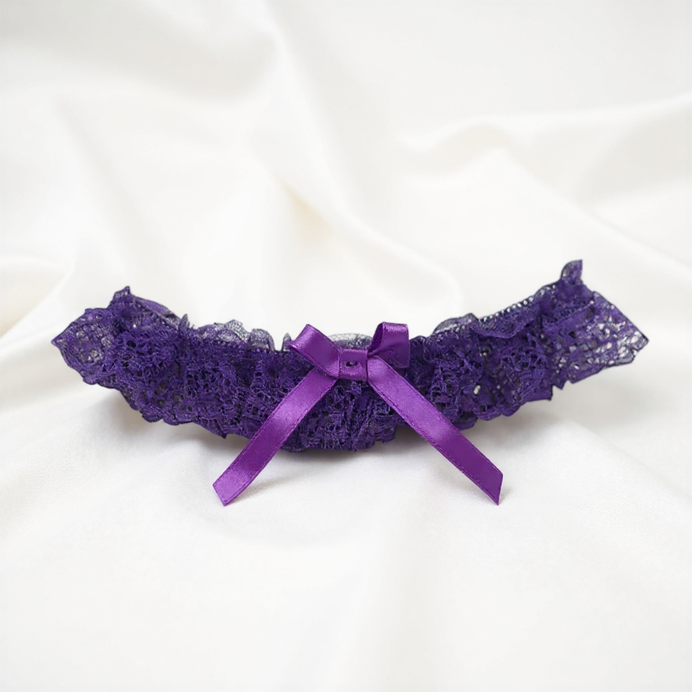 Channel timeless elegance with this Purple Lace Garter with a mini Satin Bow – a perfect blend of sophistication and romance. Crafted from delicate lace, this garter features an elegant satin bow and an elastic thigh band for a flawless fit. Designed as the perfect bridal accessory, this garter also delivers vintage vibes or modern grace with a touch of class.