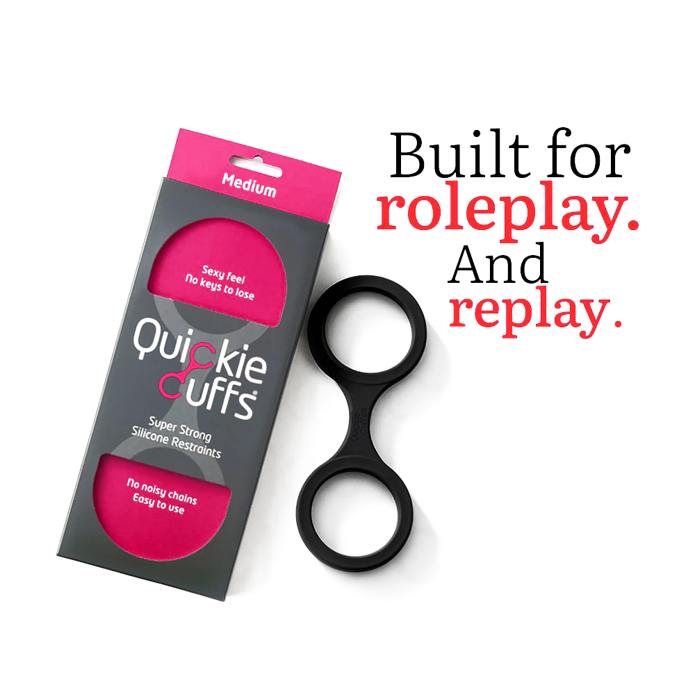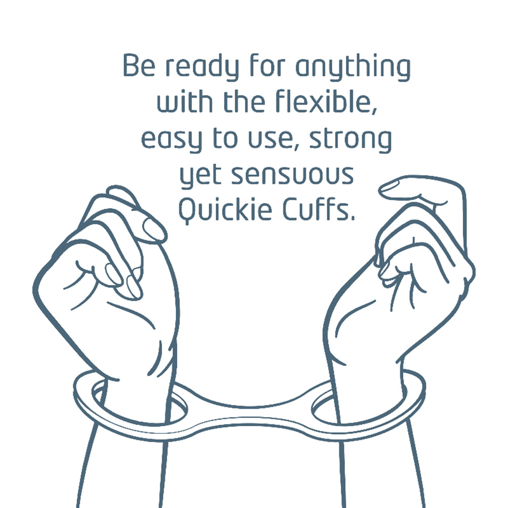 Be ready for anything with the completely transportable, sensuous, easy to use Quickie Cuffs. Quiet! No noisy chains. Universal flexible silicone to fit anyone’s wrists. Instant! no fiddly keys or ill fitting cuffs Comfortable control. Soft but strong and secure silicone. Innovative: first flexible cuffs on the market. Easy to use. Anytime, anyplace. Creative Conceptions – Quickie Cuffs. Categories Bondage, Fetish and& Kink, Valentine’s Day, Bondage Restraints, Cuffs.