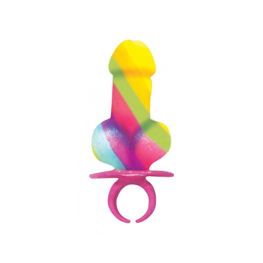 Put a cock-shaped ring on it! Take your taste buds over the “erotic rainbow” with these multi-color Rainbow Penis-Shaped Ring Pops from Hott Products. Sure to make any party come alive, with their bright neon rainbow-colored stripes and great fruity flavor taste! Individually-wrapped,