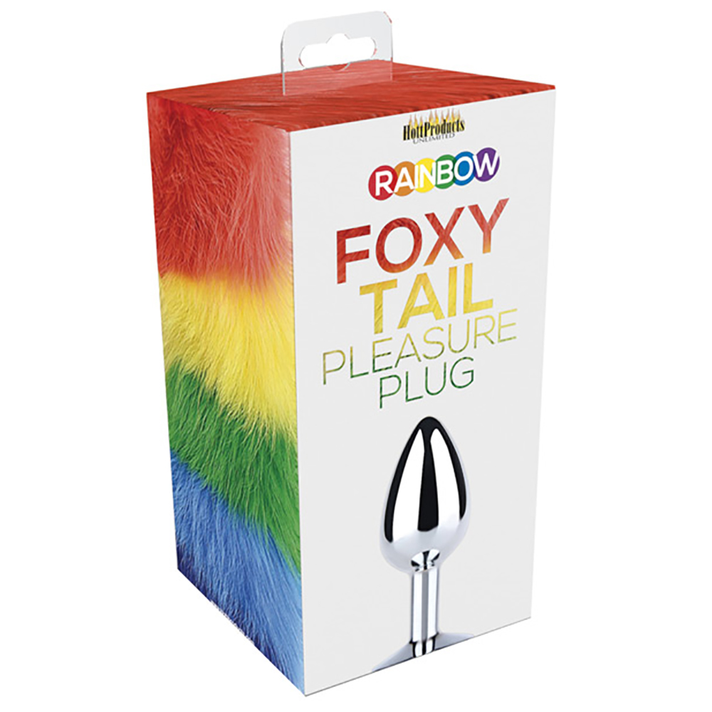 Feeling a little Foxy? Well now you can get down and play in a colorful way with the Rainbow Foxy Tail Pleasure Plug! The stainless steel buttplug is super smooth and perfectly contoured for easy comfortable entry into yours or your partners anal cavity, and the Ultra Soft Rainbow Fur Tail hanging down only adds to your erotic experience as it gently caresses your skin. Features: specially contoured stainless steel tip. Easy comfortable entry. Super soft Rainbow Fur Tail. Color silver butt plug, multi-color tail.