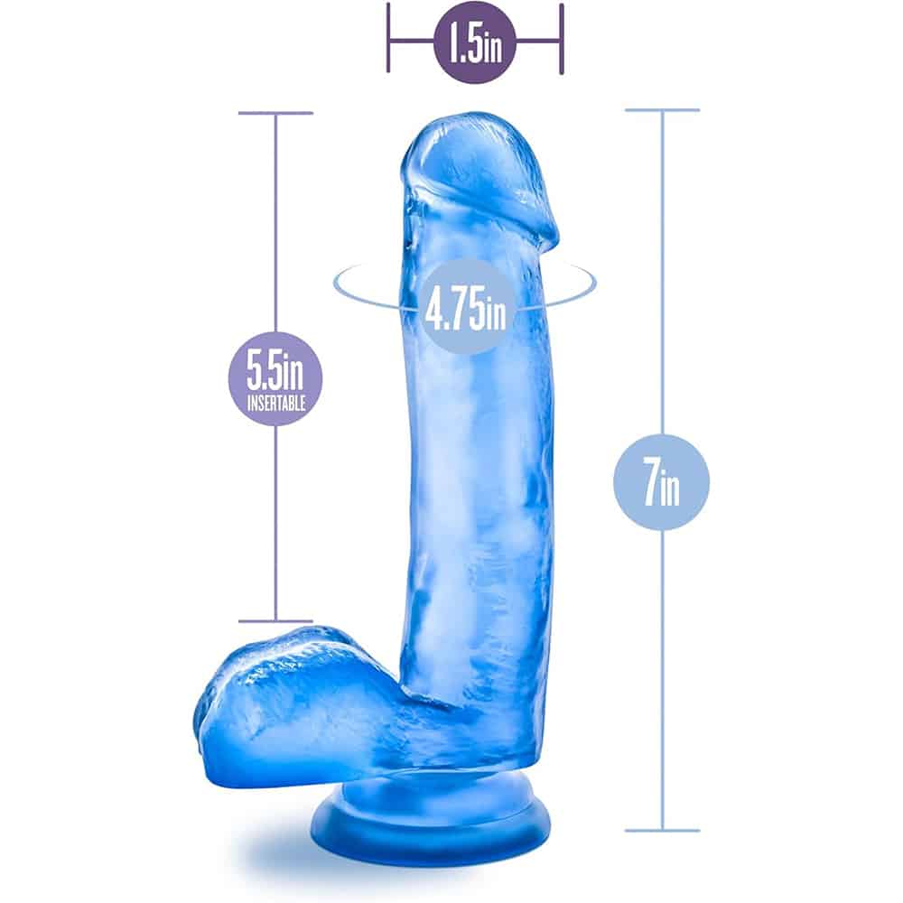 Rock Star 7″ Blue Perfect Dildo w Balls & Suction Cup Base