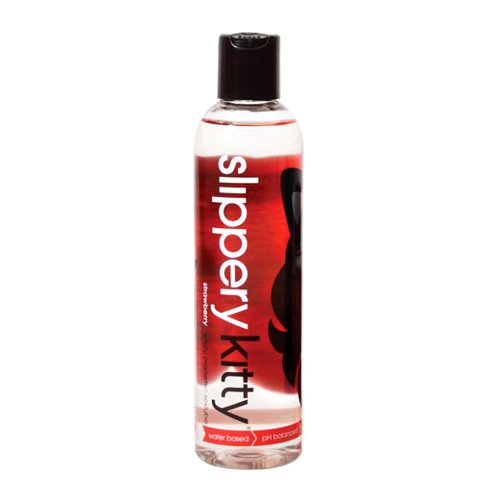 Slippery Kitty Strawberry Lust Personal Lubricant 8 ounces. The sensation is so good because it feels so real. Come try a sex lubricant so smooth and sexy, you will want to squeeze some on your lover the moment it arrives. But why wait? Just drizzle some on yourself and let the fun begin. Slippery Kitty is insanely satisfying. Silky smooth. Safe to use. Condom-friendly. And oh so arousing. Easy clean up too! Choose the formula that suits your style: FDA and doctor-approved Au Naturel for carefree internal use and Strawberry Lust, ideal for hearty oral appetites. No yucky aftertaste and it’s lickable! Slippery Kitty will not stop until you do. Make sex that much more enjoyable. Just give it a squeeze and enjoy! Female friendly sex lubricant that’s completely irresistible. Water-based formula ensures stain-free cleanup, is silky smooth, long lasting, latex condom compatible. Vitamin E and Aloe enrich for ultra-sensitive skin. Ingredients: Water, Aloe Barbadensis Aloe Vera Leaf Juice, Glycerin, PEG, Carboxymethyl Hydroxyethylcellulose, Sodium Benzoate, Tocopheryl Acetate Vitamin E, Propylene Glycol, Tetrasodium EDTA, Dimethicone Copolyol, Methylparaben, Imidizolidinyl Urea. Tickle Kitty.
