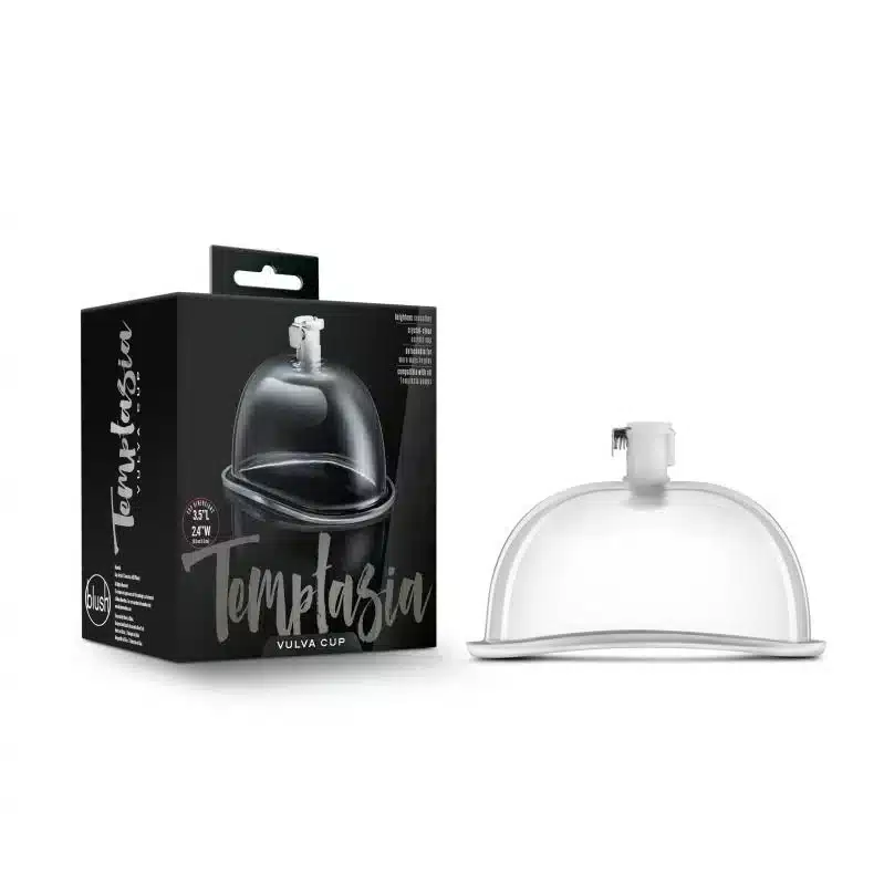 The Temptasia Vulva Cup is compatible and interchangeable with other Temptasia pumps and accessories. In use with a quality pump, it will bring temporary engorgement and heightened sensitivity as the pump system increases circulation to your vulva. This cylinder is also detachable if you are seeking to hold the suction while you play. Made of body safe acrylic, the Vulva Cup is easy to use and easy to clean.
