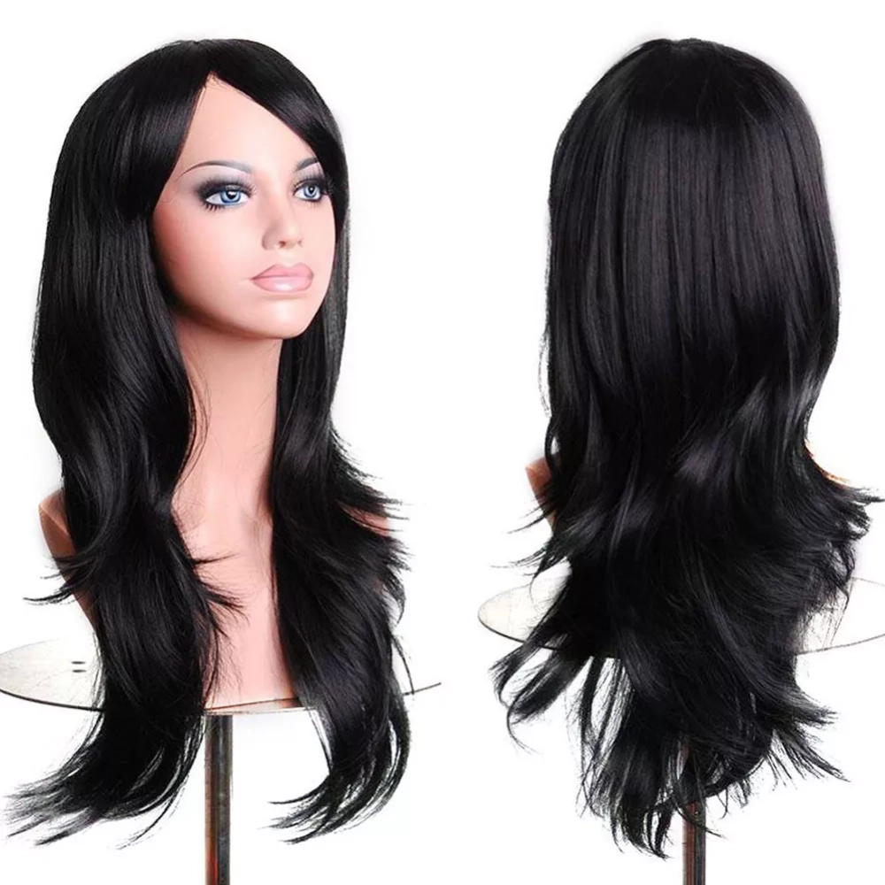 The VIP Sexy Long Layered Hair with Side Bangs Wig – Black features soft, cascading layers that flow down past the shoulders, creating a full-bodied silhouette that adds dimension to your style. The side-swept bangs have a flirty, feminine touch that can transform your costume or party attire from casual chic into sexy seductress. Excellent quality, soft-touch 100% Japanese Kanekalon-made fiber wig with a wig-centering design. The size is adjustable and no pins or tape should be required. To secure, adjust the hooks inside the wig cap to the correct size to suit your head.