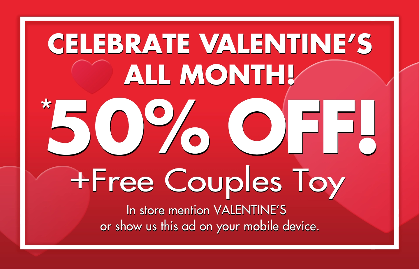 There are so many ways to celebrate Valentine’s Day this year and Romantic Depot has all the tools to help you! Come visit one of our store locations and see for yourself! You will always be welcomed by our kind and inviting staff who are knowledgeable about all things Romantic Depot and will be happy to help you with anything you need. Have a sexy, safe Valentine’s Day from all of us at Romantic Depot!